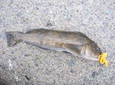 引き続き同じパターンで狙っていると「コッ!」と今度は明確なバイト!フッキングすると「ゴンゴン!」と強く首を振るアブラコ(アイナメ)特有のファイト!が、ケーソンの隙間が狭まく頭がひっかかるのか!?ある程度のところで動かなくなり苦戦。魚の動きを利用して外そうとラインテンションを張ったり緩めたりと色々試すも出てこず惜しくもラインブレイク(涙)サイズが良さそうなだけに悔しい敗戦でした。それでもめげずキャスト開始!ちょうど時合だったのか?すぐにバイトがありヒット!すんなり上がってきたのは小型のアブラコ(アイナメ)。
