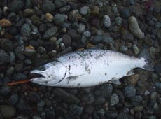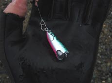 気持ちを切り替え再びキャスト開始!いろんなルアーをローテーションしながら探っていくと、タックルハウス・P−BoyJigキャスティング北海道限定カラーレッドゴールドイワシに変えたところでヒット!50mほど沖目で「ガツン!」ときました!!今度は絶対にバラさないように慎重にファイト。手前まで寄せてくるとガッチリと針掛かりしているのが見えたので一気に寄せてランディング!!56cm、2.6kgのポッチャリ系のサクラマスゲット!!