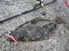 5月6日夕方、水面で何かがライズしているポイントに繰り返しキャストをしていると、ストップ&ゴーのリトリーブ中にヒット!上がってきたのは50.5cmのヒラメ!!ヒットルアーはパワーシャッド5インチ!今期初物をゲットすることが出来ました!!!