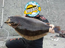 夕方、漁港をランガンしていると一部水深の深いエリアを発見したのでその辺を9gジグヘッドにバークレイ・パルスワーム4インチ・ブルーシルバーをセット。ストップ&ゴーで狙いつつ少しずつキャスト位置を変えていき6投目、ついにアタリが!重量感があり「バフバフ」と明らかにデカアブではない重みに興奮 !寄せてくると、リールのドラグが出る出る!仲間にタモ入れを要請し、やり取りすること 2分くらい?思い切って浮き上がらせネットイン!!あがってきたのは65cmの大きなヒラメでした!!!