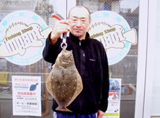 早朝、サーフに波は無く雰囲気は良い感じ。深みのあるポイントを見つけ入釣。早速仲間に魚の反応!その付近にミノーをキャスト!ストップ&ゴーで狙っているとストップ中に「ゴン!」キャッチしたのは46.5cmのヒラメ!今季初物をゲットすることができました!
