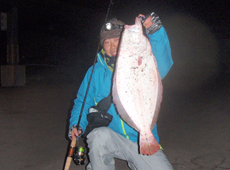 引き続きミノーで狙うも反応が無いのでワームにチェンジ。ストップ&ゴーで狙い続けると藻でも掛かったかのような重みがあり、フッキングするとスッポ抜け。そのまま誘い続けると「ゴン」とバイトがありすかさずフッキング!!かなりの重量感と底に突っ込もうとする強い引き!キャッチしたのは60cmのナイスサイズのヒラメ!ヒットルアーはバークレイ・パルスワーム4インチ ブルーシルバーでした! |