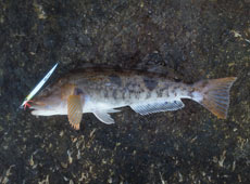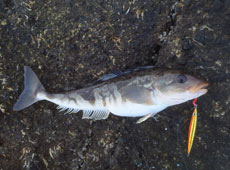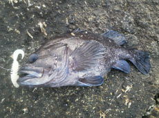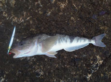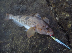 いきなりホッケとは違う強い引き!キャッチしたのは40 cm手前のアブラコ(アイナメ)!