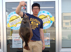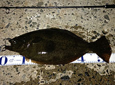 ひたすらランガンし続け、やっと訪れた「コツコツ」と小さな反応。その瞬間「ドンッ」とロッドが持っていかれ、すかさずフッキングするとドラグが出ていき大暴れ!苦戦しながらなんとか浮かせましたが、水面に出てからも暴れ続け1度目のタモ入れに失敗!!かなり緊張しながら2度目のタモ入れで無事ネットイン!!タモを引き上げた瞬間にフックがはずれ間一髪!!55cm、2.04kgの今期初ヒラメ!こんなに引いたヒラメは初めてでした。