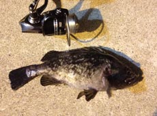6/8仕事帰りに函館港内でぶぅたろうとプチロック開始。 バイトはあるもののショートバイトばかりでなかなかのらない中、私が根掛かりから回収中、3.5gイワシヘッド&バスミノーホワイトにクロソイヒット!抵抗が強くピックアップに一苦労しましたが、なんとかランディング。