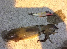 その後もサイトで狙い、ぶぅたろうはポコポコっと連続ヒット!!その時!ぶぅたろうが表層をフワリと泳ぐコウイカ発見!すぐさまエギを入れてキャッチ!さすがイカ釣り職人( ≧∇≦)