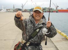ポイントを移動し、合流した金子さんとラン&ガン!先にヒットしたのは金子さん!スイミングパターンでアブラコ(アイナメ)ゲット!ヒットルアーはエコギア・グラスミノーL。