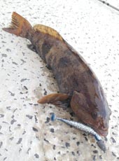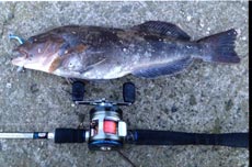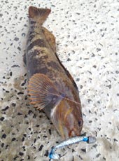 そしてヘチと並行にキャストしミディアムリトリーブしたところ、もう少しで40センチのアブラコ(アイナメ)をゲット!