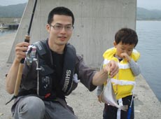 ダウンショットリグのシンカー部分にジグヘッドを装着。ワームを2つセットし数釣り作戦。すぐにソウハチがヒット!その後も量産していました!