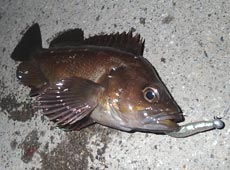 夕方から噴火湾方面でロックフィッシュ!ベイトタックルを使い、ボトムをエコギア・ロッククロー3インチのテキサスリグで誘ってくるとカジカがヒット!さらに同じ場所へキャストすると立て続けにカジカがヒット!
