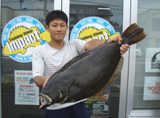 前に釣った59cmのヒラメと同じような重量感のため、同サイズと思い手前まで寄せてくると、急に重量感が増し良型と確信。