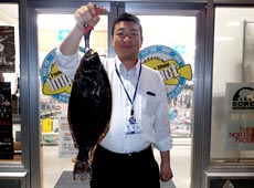手前まで寄せたものの足場が高くタモが届きそうにないので、思い切って抜き上げランディング成功!54.5cmのヒラメをゲットしました! 自己記録更新!次の目標は60オーバーです!