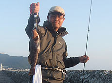 日が暮れてからソイ狙い。7g程度のジグヘッドでは食いが悪く、1.8gのジグヘッドやネコリグなどライトな釣りに高反応。一時はワンキャストワンヒットになることもあり、二人とも沖堤での釣りを満喫して終了となりました。
