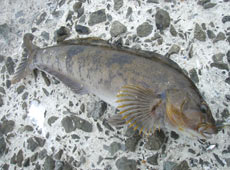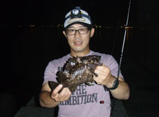 日が沈みかけた頃から、ソイの反応が出始めポツポツとヒット!沈みブロックの際を狙っていた板谷さんが30cmに迫る良型ハチガラ(オウゴンムラソイ)をゲット!