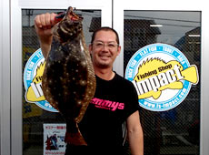 久々にゲットしたヒラメは48.5cm! これでダービー全エリア登録!通い続けた甲斐がありました!