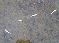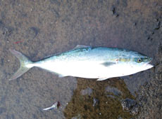 ポイントに到着すると、風は向かい風で波っ気があり、釣れそうな雰囲気!青物に追われているのか、カタクチイワシが磯場に打ち上げられ期待十分!