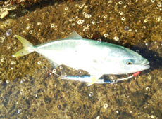 3日目は再び日本海方面へ!夜明けとともに釣りを開始!しばらくすると近くのアングラーにヒラメがヒット!しかし、後が続かず魚の反応無し・・・。時折水面でサヨリらしきベイトフィッシュが青物に追われているのかピチピチと逃げている状況。ウズスポーツフィッシングラボ・俺のシャバジグ55gをセット。ジャカジャカ巻き後のワンピッチジャークで狙っていると待望のヒット!すんなり上がってきたのは30cmほどのワカシサイズのブリ。その後もシャクリ続け、小型のヒラマサを2匹ゲットし3日目が終了。