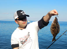 ポイントを移動し、メタルジグで青物を狙うとソゲサイズのヒラメがヒット!