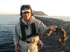 10 月 12 日午後 3 時〜 9 時の時間帯で函館港沖防波堤に行ってきました!開始直後からアブラコ(アイナメ)がコンスタントにヒット!小型のショートバイトも多く苦戦しながらも皆さんゲットしていました。良型のハチガラ(オウゴンムラソイ)や30cm近いサバも上がり、楽しんでいる内にあっという間に夜のソイタイムへ