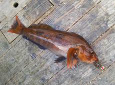 かなりの重量感で上がってきたのは50アップのアブラコ(アイナメ)!