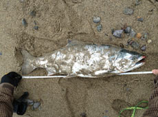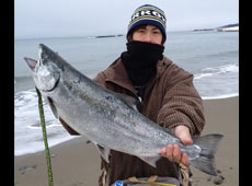 夜明けとともにサーフに入釣。メタルジグをセットしラン&ガン開始!しばらくするとリトリーブ中に「ドカン!」とナイスバイト!キャッチしたのは62cm、3kgオーバーのナイスサイズ!!ヒットルアーは岡クラフト・岡ジグLT−35インパクトオリジナルカラー ブラックピンク。 その後、場所を移動し再びメタルジグをキャストすると、1投目から魚の反応!同じポイントにキャストをすること3投目、リトリーブ中に「ガツン!」キャッチしたのは57cmとまたもやナイスサイズ!ヒットルアーは岡ジグLT−35 ブラックピンク。3kgオーバーのサクラマスをゲットでき最高の1日となりました。