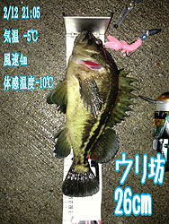 2/12(水) 仕事終わって18:30帰宅。 Radioを聞くと、週末は荒れると。 金曜と土曜は勤務が入ってって釣りどころでない。 んっ?今夜は天気がイイね!って、勝手に体がTackleを用意してました(笑)