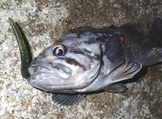 そこで、1.3gネイルシンカーにエコギア・ストレート3-1/4インチのネコリグにチェンジし岸壁際にキャスト!着底後、細かいシェイキングで誘っていると「ツン」とバイト!ランディングしたのは、またまたクロソイでした!ネコリグのスローで艶めかしい誘いが効いたのかもしれません。今回は喰い渋い状況でしたが、久しぶりにソイの引きを味わえたので楽しかったです。