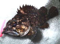 さらに場所を移動し同じように誘うと再びヒット!さらに強い引きを見せドラグを鳴らしながら上がってきたのはハチガラ(オウゴンムラソイ)!ヒットルアーはエコギア・ストレート3 -1/4インチ。