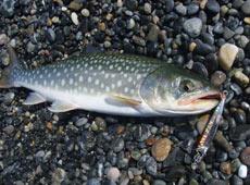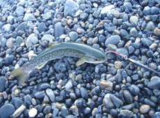 上ノ国方面へ海鱒を狙いに行ってきました。ポイントを転々としながら狙っていると、小型のアメマスがコンスタントにヒット! 岡クラフト・LT−21 セグロカラーをテロテロとスローリトリーブさせると好反応!
