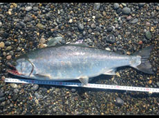 上げて見て、サイズ測ったら52p! 嬉しいチョ〜嬉しい!! 人生初の、サクラ鱒にアリガトウですって言ってしまいました。 初めてのサクラ鱒に、もう興奮しまくりです! |
