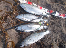 4月26日、日本海方面へサクラマス釣行に行ってきました。夜明けからキャストを開始するも反応がなく・・・周りでも釣れている気配が無いので大きく場所を移動。その先でサクラマスの跳ねを発見!さらにもじりが見え始めました。これはチャンス!とジグミノーをキャストするとすぐに反応が!ヒットしたのは52cmのサクラマス!ランディング後すぐさまキャストし、同サイズのサクラマスが連続ヒット!更にヒットは続き57cmのサイズアップ!最後は60オーバーがヒットし、わずか30分の間で良型サクラマスが連発!今まで味わったことがない好釣果を体験しました。