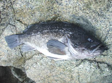 ルアーをワームにチェンジ。同じスポットを探ってみるとフォール中ホッケとは違うバイト!フッキングと同時にズッシリとした重量感を感じ良型ソイと確信。ジリジリとトルクのあるファイトを見せてくれたのはフットボールのような丸い体型をした40アップのクロソイ!ヒットルアーはバークレイ・パルスワーム4インチ ブラック。