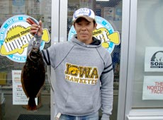 それでも諦めずメタルジグを遠投し、底を意識しながらストップ&ゴーで誘ってくると、手前まで来た所でヒット!49cmの人生初のヒラメサイズをゲット!