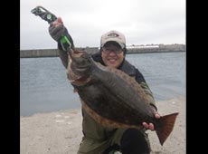 ポイントを移動してから1投目、ストップ&ゴーで沖目から探っていると手前の常夜灯の明かりの切れ目付近に差し掛かった所でバイト!少し送り込んでからフッキング!キャッチしたのは61pの良型ヒラメでした。