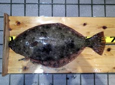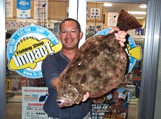 メタルジグを遠投して遠目をさぐってくると重量感が・・・前日までの悪天候のためゴミが多かったので、ビニール袋か?と思いながらもゆっくりロッドをあおると「コツコツ」と生命感!ゆっくりと巻いてくると、手前付近で強烈な引きに変わりました。寄せてはラインを出されを3回繰り返し、何とかランディング成功!65.5cmのヒラメキャッチ!