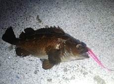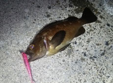 同じパターンで狙うと次にヒットしたのはクロソイ!ヒットルアーはノリーズ・インレットミノー2.8インチ。ワームの色とアクションの違いか!?ガヤは釣れず今度はクロソイが連続ヒット!喰いが渋くてもダートアクションでスイッチが入るのか?釣れた魚はワームを丸呑み!