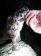 今回は違う漁港を調査しました。前回の漁港で釣れた外海側のテトラ帯をメインに探るとヒット!正体はクロソイ。
