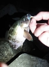 その後もクロソイはヒットするものの本命メバルはヒットせず…。あちこちラン & ガンしましたが諦めて実績の漁港へ。まだ探っていない所をメインにラン & ガン!表層近くをスイミングで狙うとヒット!小型でしたがクロメバルゲット!