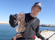 釣り場に到着すると柴田さんと遭遇!状況を聞くと、アブラコ(アイナメ)がコンスタントに釣れているとのこと!いっしょに釣りをさせていただきました。