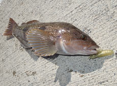 すると柴田さんにさっそくアブラコ(アイナメ)がヒット!エコギア・ミノーSのテキサスリグが高反応とのこと。