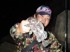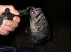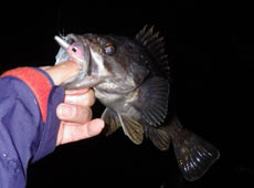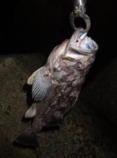 引き続き同じパターンで狙うとまたまたヒット!良い感じのファイトで上がってきたのは33cmのクロソイ!ワームの選択が悪かったのか?実際は表層付近に魚がいた様子。