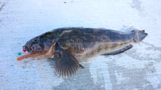 南茅部方面編 早朝から船揚場に斜路に入釣、タックルはロックスイパー9.2フィートの10周年モデルにルビアス2500で17.5gのブラスシンカーを遠投。斜路のかけあがり付近から根掛かりを外しながらロッドあおった際にバイトが集中して、グッドサイズの42センチのアブラコ(アイナメ)をゲット ! ヒットワームはエコギア ・ ロックマックス4インチです!