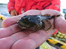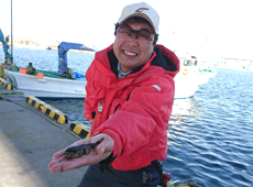 オガパパ&なかじ〜が検量に持ち込んだのは手乗りサイズのカジカ(笑)キーパーサイズは無制限のため、小さくても1匹は1匹!小型のルアーで厳しい状況の中、釣り上げた貴重な釣果でした。