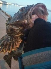 まずは堤防の際をクロー系ワームのテキサスリグで攻めると、着水と同時にバイト!しかし、すっぽ抜けてしまい再度同じ所へキャストしシェイクで誘ってみると「ガツン」とバイト!こんどはフッキングに成功し、37cmのカジカをゲット!