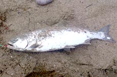 釣り場に到着すると予報通りの荒れ模様・・・なんとか風をかわす場所を発見して入釣。最初は21gのメタルジグで手前を泳がせてくるも反応がなく、メタルジグを岡クラフト・LT30にチェンジ。潮が右から左に流れていたので、右方向にキャストしてドリフト気味に巻いてくると2投目でヒット!強めに締めていたドラグが鳴り、ラインが出されました。慎重に寄せてランディング成功!51センチの今季初サクラマス!