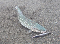 その後、反応が続かず移動。 次のポイントは波が高くアメマスに期待!ミディアムディープタイプのミノーをキャスト!ミディアムリトリーブで狙うとすぐにヒット!キャッチしたのは45 cm ほどのアメマス!ヒットルアーはタックルハウス・ノード130FD。