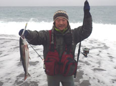 それからは潮の流れが弱くなり魚の反応が悪くなってきました。それでも諦めずキャストを繰り返していると、金子さんに再びヒット!厳しい状況の中、嬉しい1匹でした!