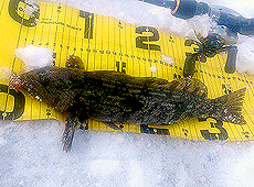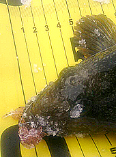 買ったばかりのバグアンツ2インチを18gのテキサスリグにセットし、ケイソンの穴や隙間を探して落とし込むとすぐさま反応が!ヒットしたのは35cmのアブラコ(アイナメ)