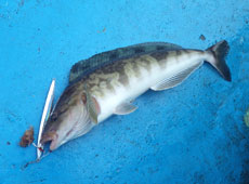 まずは根魚のポイントで釣り開始!カルティバ・撃投レベルでボトム付近を狙うとさっそくヒット!ワクワクしながら上げてくると、姿を表したのは良型のホッケ!キャッチしたのは50pに迫るナイスサイズでした!