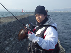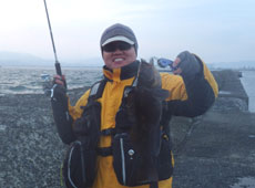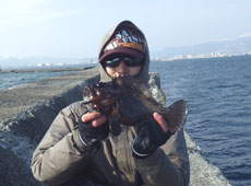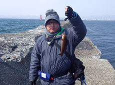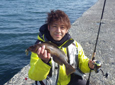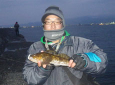 水温がまだ低いため、捨て石やケーソンの隙間をメインに探るパターンで狙うと、開始早々からアブラコ(アイナメ)がヒット!中には40アップの良型も!